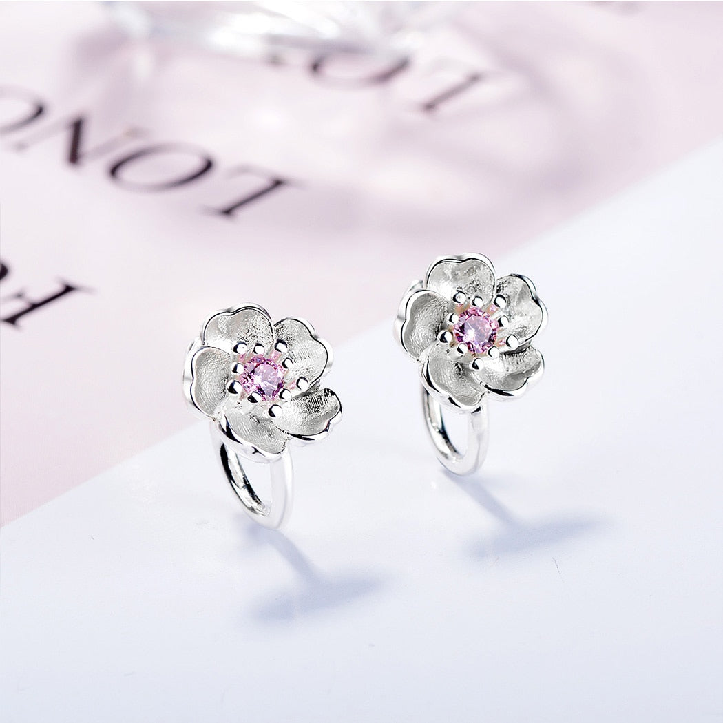 Cherry Blossom Flower Clip on Earrings